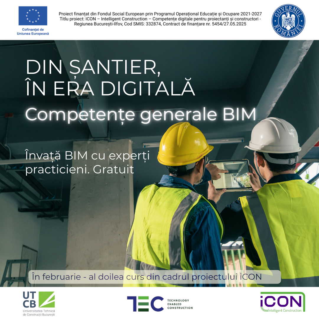 Pornind de la succesul primei serii, nu ne oprim aici. În a doua jumătate a lunii februarie, dăm startul unei noi grupe de „BIM – Competențe Generale”, dedicată profesioniștilor care vor să țină pasul cu transformarea digitală a sectorului construcțiilor.