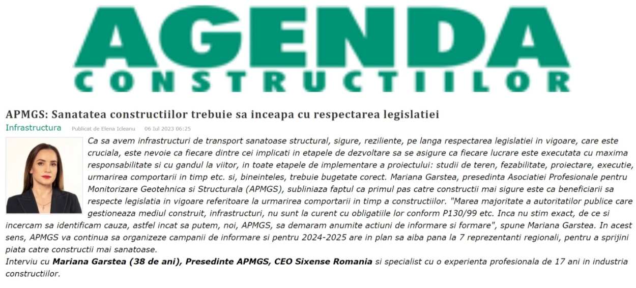 In an interview with the construction magazine Agenda Constructiilor on July 6, Mrs. Mariana Garstea, President of APMGS and CEO